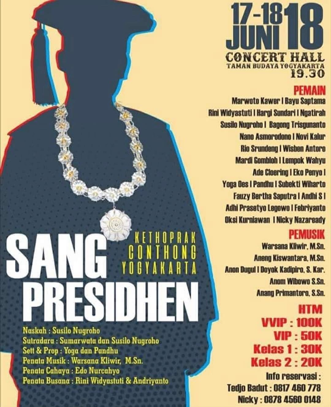 Kethoprak Conthong Yogyakarta mempersembahkan Sang Presidhen | 17-18 Juni 2018 | Pukul: 19.30 WIB | Concert Hall Taman Budaya Yogyakarta