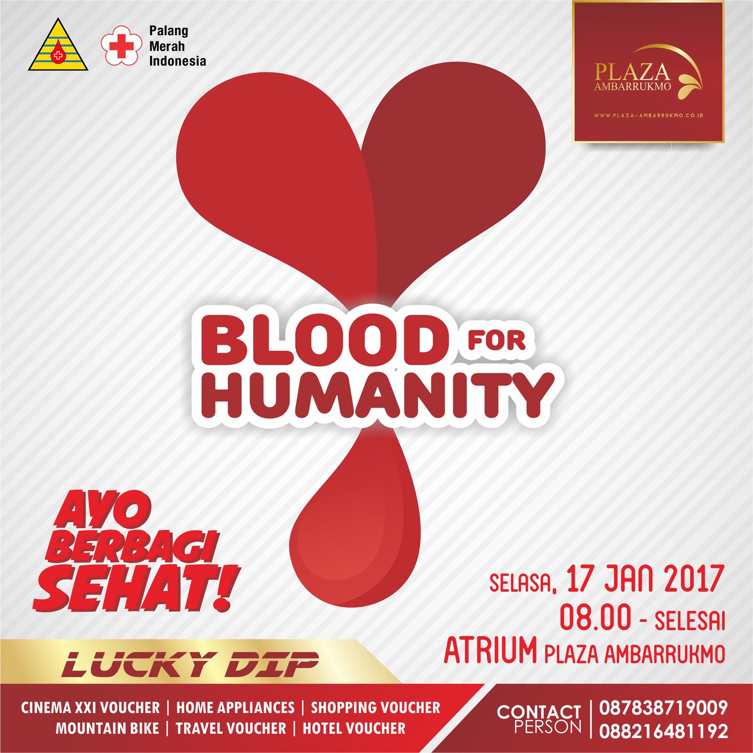 Donor Darah "Blood For Humanity" | 17 Januari 2017 | 08.00 WIB | Plaza Ambarrukmo Yogyakarta