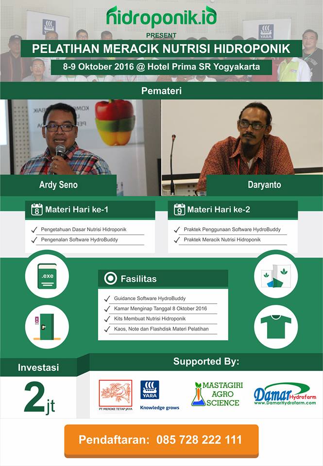 Pelatihan Meracik Nutrisi Hidroponik | 8-9 Oktober 2016 | Hotel Prima SR Yogyakarta