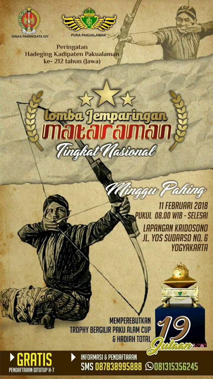 Lomba Jemparingan Mataraman | Minggu, 11 Februari 2018 | Pukul : 08.00 - Selesai | Lap. Kridosono Yogyakarta | Info : 087838995888