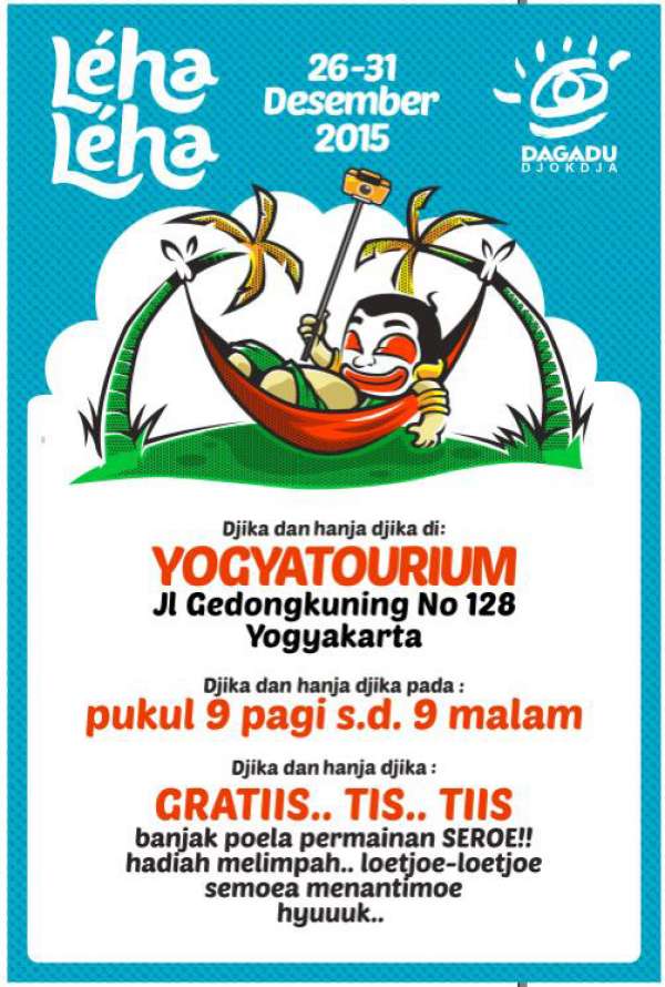 Tanggal 26-31 Desember 2015 di Yogyatourium, Jl. Gedongkuning Selatan No. 128, Yogyakarta | CP: 081 22789 506