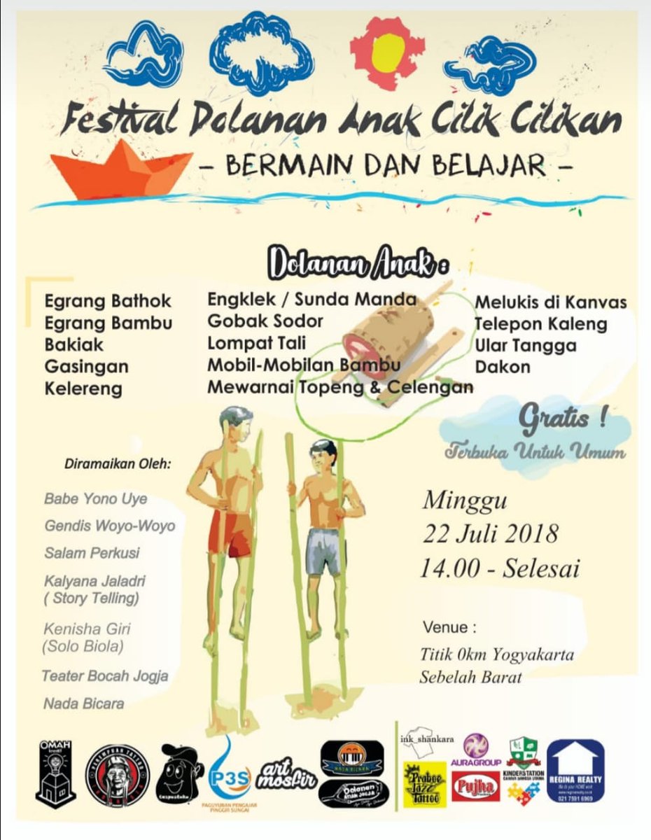 Festival Dolanan Anak Cilik-cilikan:Belajar dan bermain | Minggu, 22 Juli 2018 | Pukul: 14.00 | Titik 0km Yogyakarta sebelah barat