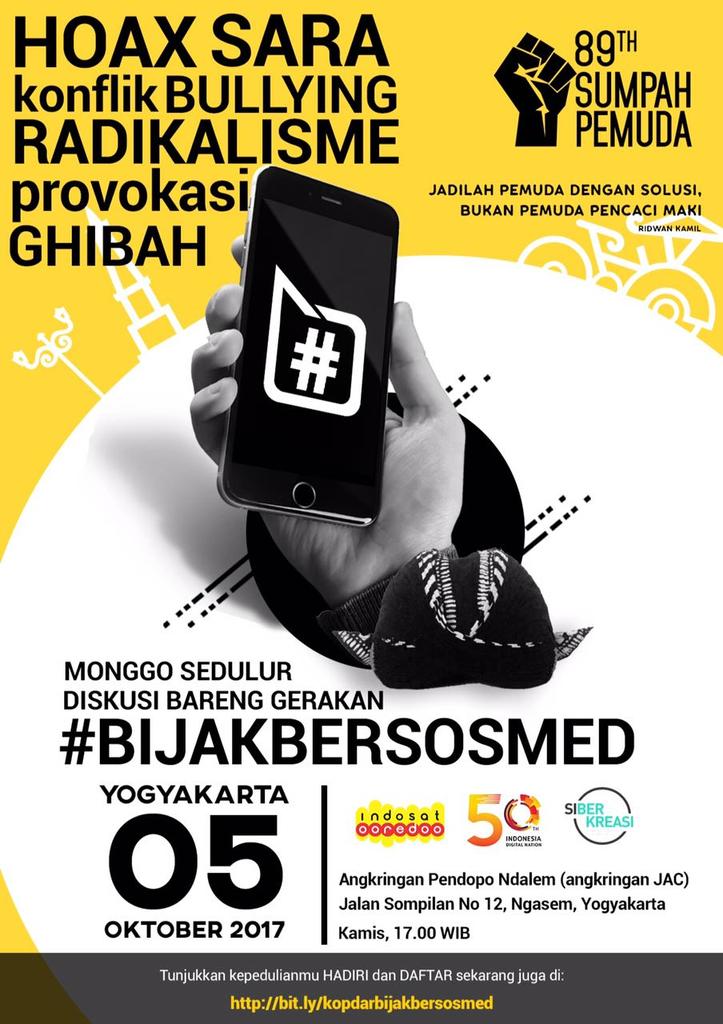 Diskusi Bijak Bersosmed | Kamis,05 Oktober 2017 | Pkl. 17.00 | Angkringan JAC Pendopo Ndalem