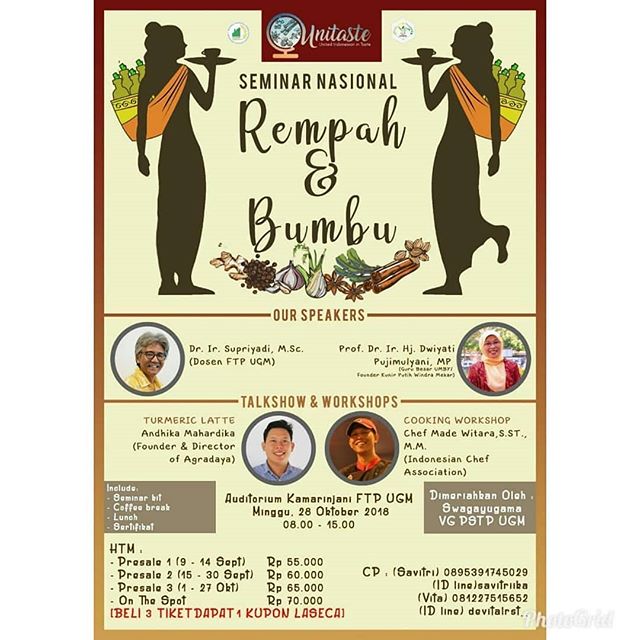 SEMINAR PANGAN NASIONAL 'UNITASTE' UNITED INDONESIAN IN TASTE yang akan membahasa hal-hal menarik tentang HERBS and SPICES yang diadakan pada :