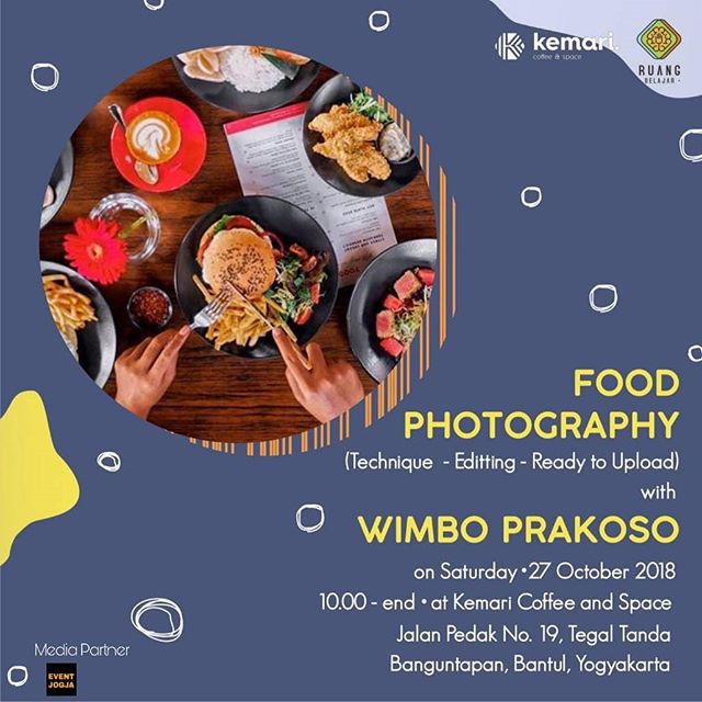 Bagi kalian yang mau belajar tentang teknik foto makanan mulai dari memfoto hingga editing dengan karya sendiri, "RUANG BELAJAR" hadir sebagai wadah teman-teman untuk berkreasi, berekspresi dan bereksperimen dengan Wimbo Prakoso yang berfokus pada Food Photography !!
