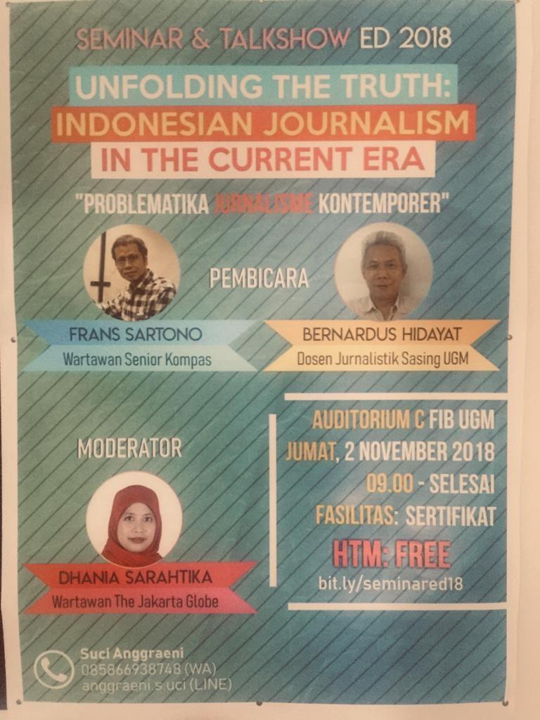 Seminar and Talkshow ED 2018 : Indonesian Journalism | 2 November 2018 | Auditorium C FIB UGM | Free