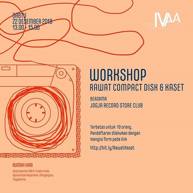 Jogja Record Store Club (JSRC) merupakan sebuah komunitas yg mewadahi para penjaja dan juga kolektor rilisan fisik musik (kaset, cd, piringan hitam dan perangkat putarnya) di Yogyakarta. Serangkaian dengan acara Selamatan Indonesian Visual Art Archive (IVAA) bertajuk "Waktu & Ingatan tak Pernah Diam", kami mengundang para peserta untuk belajar bersama melakukan konservasi, restorasi dan digitalisasi material kaset dan CD bersama Jogja Record Store Club (JRSC). Diharapkan hasil workshop ini dapat berguna untuk menyelamatkan arsip audio yang sangat berharga di masa depan. Peserta dalam workshop ini dibatasi hanya untuk 10 orang. Workshop akan diadakan pada: