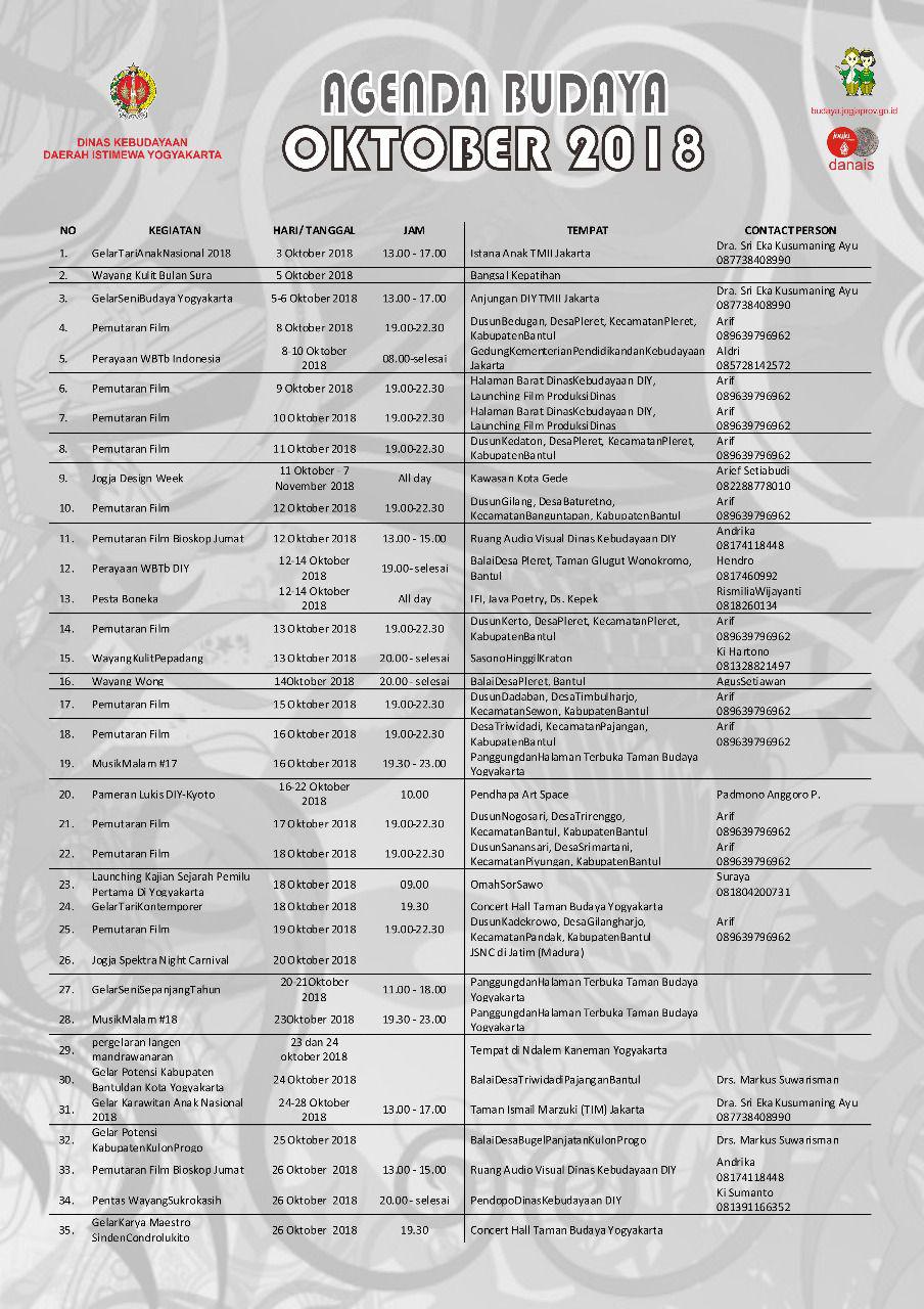 Agenda Budaya Oktober 2018 | Oktober 2018