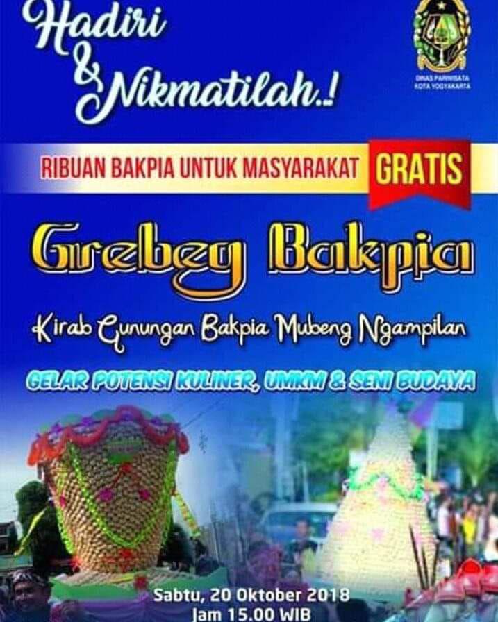 Saksikan Grebeg Bakpia 2018 | Sabtu, 20 Oktober 2018 | Pukul.15.00 WIB | Kirab gunungan mubeng Ngampilan | Gelar potensi UMKM, Kuliner dan Seni Budaya